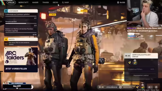 00:57:02Der Streamer beginnt 'Ark Raiders' zu spielen, ein Extraction-Shooter, den er auf Empfehlung von Shroud ausprobiert. Er ist gespannt, ob das Spiel seinen Erwartungen entspricht. Er richtet sein Konto ein und bemerkt, dass der Name 'Papaplatte' noch frei war, was er als schlechtes Zeichen für die Spielpopularität interpretiert. Kurz darauf stößt Wieland zum Stream hinzu, was den Streamer sichtlich freut. Wieland hat bereits Erfahrungen mit dem Spiel gesammelt und erklärt die grundlegenden Mechaniken, wie das Looten und die Karte. Sie beschließen, gemeinsam die Map zu erkunden, wobei Wieland ihn durch die Spielwelt führt und Tipps gibt.