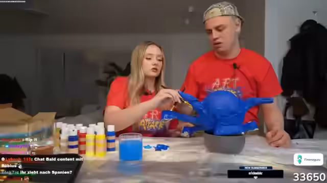 02:47:09Der Fokus verlagert sich auf das gemeinsame Basteln eines Art-Attack-Projekts, eines sogenannten 'Hausses'. Hierbei kommt es zu kreativen Diskussionen über Farbgestaltung, insbesondere bei der Wahl der Farbe für die Augen. Gleichzeitig wird ein weiteres, vielversprechendes Projekt angekündigt, das laut Kenny nur 15 Minuten dauern soll, was auf Skepsis stößt, nachdem die ersten Projekte deutlich länger in Anspruch nahmen.