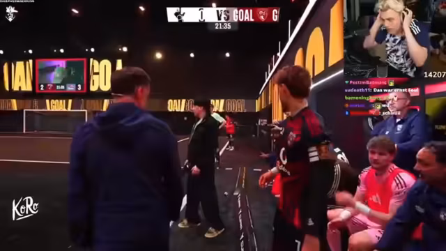 01:55:07Der Streamer spricht über das bevorstehende Kings-League-Spiel gegen 'No Rules Chat'. Er ist 'sehr gespannt' und hat 'Angst', vertraut aber seinem Team. Die Gegner sind 'sehr stark' und 'ungeschlagen'. Es wird erwähnt, dass die ganze Liga 'ziemlich stark' ist und kaum einfache Teams gibt. Der Streamer ist krank und wird nicht vor Ort sein, um sein Team nicht anzustecken, und findet es auch 'besser'. Es gibt Diskussionen über die Spielstrategie und die Notwendigkeit, einen zweiten Torwart im Team zu haben.