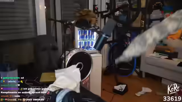 00:26:59Der Streamer äußert sich positiv über bestimmte TikTok-Inhalte und erwähnt, dass Hugo und Chef Strubbel zusammen live auf TikTok waren, was er jedoch kritisierte. Er betont, dass man seine Freunde kritisieren muss, wenn sie schlechte Inhalte produzieren. Er erzählt von einem Fan im Rollstuhl, der bei einem Dreh mit UFO eine große Kamera in seinem Pflegebeutel versteckt hatte. Anschließend kündigt er an, sich VR-Spiele anzusehen und zeigt ein Gerät, auf dem man mit speziellen Schuhen laufen kann. Kenny hat ihm ein Video davon geschickt. Ein Zuschauer spendet und erzählt von seiner Trennung, woraufhin der Streamer ihm viel Liebe und Unterstützung zuspricht. Er erwähnt, dass Kenny das VR-Gerät aufgebaut hat, da Tim im Urlaub ist, und dass er es mit Trimax ausprobieren wird, da Hugo es nicht geschafft hat, es zu kaufen. Er zeigt ein kurzes Video von Kenny, der das Gerät testet.