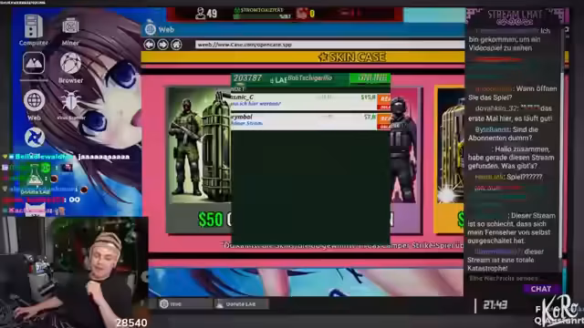 02:23:34Der Streamer plant, Counter-Strike zu streamen und Kisten aufzumachen, stößt jedoch auf technische Hindernisse. Das Spiel lässt sich aufgrund unzureichender Systemanforderungen nicht starten. Stattdessen wechselt der Streamer in den Just-Chatting-Modus und spielt stattdessen andere Spiele. Trotzdem bleibt die Performance unbefriedigend, und der Streamer ärgert sich über die technischen Einschränkungen und die dadurch beeinträchtigte Stream-Qualität.