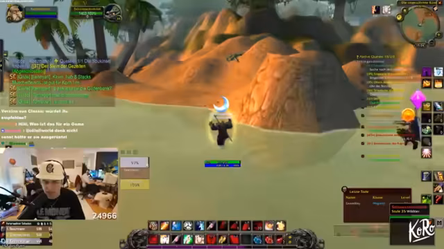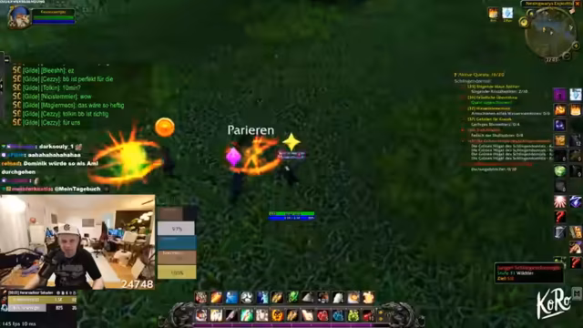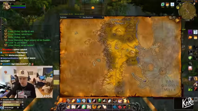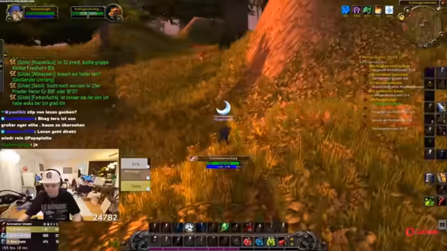 10:13:57Wieland zieht einen Vergleich zwischen WoW Hardcore und dem echten Leben, wobei er neue Loots mit einem besseren Job oder einer neuen Freundin gleichsetzt. Die Gruppe plant, die aktuelle Zone zu verlassen und nach Desolace aufbrechen, um dort weiter zu leveln. Vor der Abreise wird ein heißer Diskussion über Verkaufsgegenstände ausgetragen. Es zeigt sich auch die Anspannung des Streams, als Wieland eine plötzliche Anspannung beschreibt und hervorhebt, dass das Überleben im Vordergrund steht, nicht das schnelle Leveln.