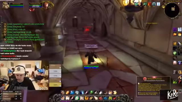 02:24:42Das Gameplay in Gnomeregan gestaltet sich herausfordernd. Streamer kämpfen sich durch das Dungeon-Gelände, wobei sie speziell auf den Einsatz von Line-of-Sight-Taktiken achten, um Aggro zu managen. Nach dem erfolgreichen Kill von Gegnern wird erst lootet, bevor die Gruppe weiterzieht, um sich nicht unnötig Gefahren auszusetzen. Ein Höhepunkt ist der Erhalt eines seltenen, T2-Items, was für die Gruppe eine große Motivation darstellt, ihren Raid fortzusetzen. Trotz der Erfolge bleibt die Gruppe aufmerksam für Respawns und positioniert sich strategisch im Dungeon.