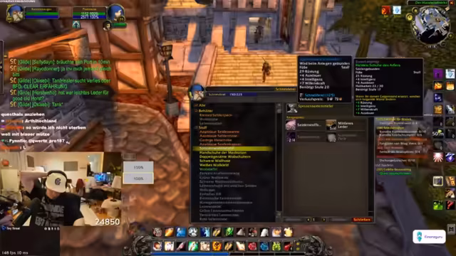 07:08:52Nach dem Erfolg im Dungeon überlegt die Gruppe, den ersten Boss der Kathedrale zu attempten, dessen Buff bald ausläuft. Der Streamer organisiert den Transport und koordiniert das Team. Gleichzeitig werden in der Gildenbank Ressourcen wie Leinenstoff und Wollstoff verteilt, um die Gildenbank zu stärken und für zukünftige Projekte vorzubereiten. Dies zeigt die enge Kooperation innerhalb der Gilde.
