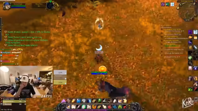 09:36:56Eine Diskussion über die erlaubten und verbotenen Hilfsmittel entsteht, bei der Guides explizit erlaubt sind, während automatisierte XP-Boosting-Tools wie Rested XP verboten sind. Dies leitet eine Phase der Koordinationsschwierigkeiten ein. Die Kommunikation im Chat wird als entscheidend für den Erfolg betont. Die Konzentration liegt auf dem Finden und sicheren Pullen eines spezifischen Elite-Mobs, wobei fehlerhafte Spawns und ungeplante Aggro-Züge die Herausforderung erhöhen.