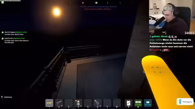 00:53:49Während des Dealer-Geschäfts kommt es zu einer Polizeiverfolgung, die die ständige Gefahr des illegalen Handels unterstreicht. Der Streamer muss fliehen, indem er mit einem Skateboard an einer Bushaltestelle in die Luft fliegt. Dieses dramatische Ereignis wird mit humorvollen Vergleichen, wie der Arbeit bei einem Supermarkt, versehen und zeigt die realen Risiken, die im Spiel simuliert werden.