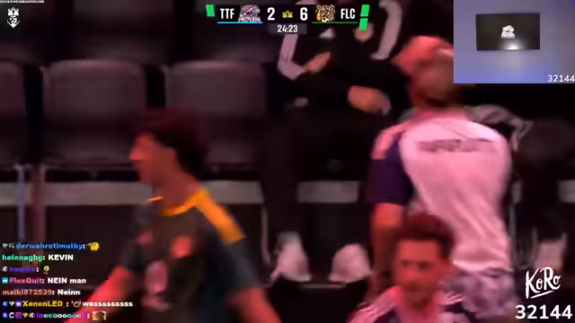 04:57:13Die Mannschaft erzielt ein Tor nach schnellem Aufbau und guter Zusammenarbeit. Während des Spiels kommt es zu einer kurzen Unterbrechung, als der Streamer aus dem Discord-Call fliegt. Besonders hervorgehoben wird der Spieler Aaron Seidel, der früher Bundesliga spielte und jetzt in der Kings League aktiv ist.