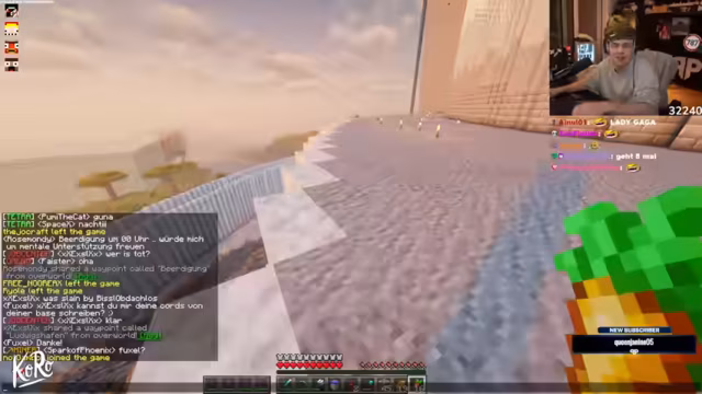 00:45:01Der Streamer kündigt an, dass keine Beleidigungen mehr verwendet werden, um Banns von Minecraft zu vermeiden, was humorvoll mit einer Entschuldigung an das Microsoft Team verbunden wird. Es wird ein 12-stündiger Redstone-Stream angekündigt, in dem eine Grafikkarte gebaut werden soll. Der Streamer bittet um Hilfe beim Bau einer Treppe, da sein erster Versuch 'wie Hundescheiße' aussieht. Er zeigt ein YouTube-Short als Inspiration für die gewünschte Treppe und hofft, dass jemand ihm dabei helfen kann, das Design umzusetzen. Insbesondere wird Feister als potenzieller Helfer genannt, da er im letzten Jahr eine beeindruckende Treppe gebaut hat. Es wird befürchtet, dass der Streamer heute in der Basis allein sein könnte, da Dominik einen Date-Tag hat und andere Spieler wie Noreax gebannt sind oder nicht zuverlässig sind. Hugo, der ebenfalls gebannt ist, erscheint mit einem neuen Account im Chat und interagiert mit dem Streamer, wobei er humorvoll seine 'Obdachlosigkeit' und die finanzielle Situation seiner Mutter thematisiert.