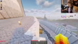 01:07:58Der Streamer erkundet verschiedene Spielmechaniken im Spiel, darunter das Springen zwischen Blöcken, das Testen von Booten und Wasserfallen, sowie die Verwendung von Ghost Blocks. Er interagiert mit anderen Spielern, zeigt verschiedene Techniken und experimentiert mit Konstruktionen. Dabei entsteht eine dynamische Atmosphäre, in der er seine Entdeckungen teilt und auf Reaktionen des Chats wartet.