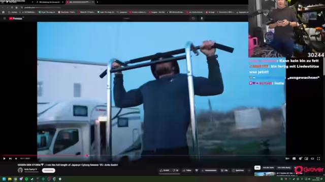 00:09:05Während der Streamer über die bevorstehende Edeltour spricht, die in Kürze startet, entscheidet er spontan, täglich zu trainieren, um wieder in den Modus zu kommen. Dazu fordert er den Chat auf, gemeinsam mit ihm 20 Liegestütze zu machen, um seine Disziplin zu unterstreichen. Gleichzeitig denkt er darüber nach, welche Ausrüstung für das Training im Wohnmobil notwendig ist, und sucht nach kompakten Geräten wie einer faltbaren Klimmzugstange.