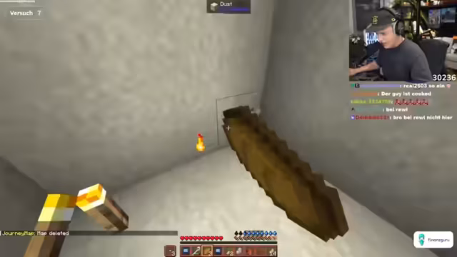 04:50:33Nach der Stabilisierung der Basis weitet sich der Fokus auf zukünftige Ziele wie die Herstellung von Lava in einem Tiegel und die Weiterentwicklung der Werkzeuge. Der Stream enthält auch persönliche und unterhaltsame Digressionen, darunter Anekdoten über die Edeltour und persönliche Geschichten. Der Streamer kündigt zukünftige Inhalte an, wie einen Charity-Stream und mögliche Minecraft-Sessions.