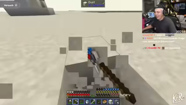 02:11:06Der Streamer ist zunehmend frustriert über das ständige Hunger- und Durst-System im Modpack. Er findet es unrealistisch und anstrengend, dass er sich mit übermäßigem Essen wie Peanut Butter und Kaktus vollstopfen muss, um dem Verhungern und Verdursten zu entgehen, dabei aber keinen sichtbaren Fortschritt macht. Er beschreibt das Gefühl, in einem endlosen Kreislauf aus Essen, Fressen und Verlieren von Gesundheit gefangen zu sein, was den Spielspaß massiv beeinträchtigt.