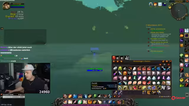 00:10:02Nach einem Meeting öffnet der Streamer den Stream und gerät in Panik, da er zunächst denkt, ein Spieler sei ertrunken. Die Situation klärt sich und es wird erklärt, dass der Hunter einen speziellen Buff für das Atmen unter Wasser besitzt. Diskutiert wird die beste Taktik für den Durchgang einer bestimmten Dungeon-Quest und der Chat gibt Tipps zum Mana-Management im Kampf. Es wird betont, dass es kein Sprint, sondern ein Marathon ist und dass der Fokus auf dem gemeinsamen Progress liegt.
