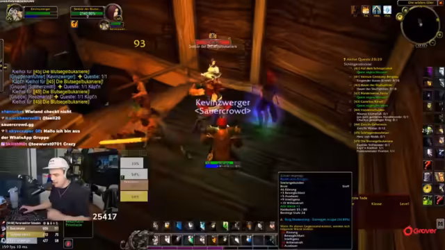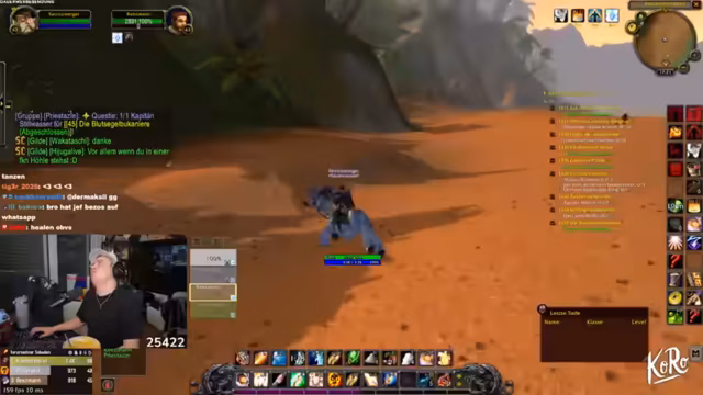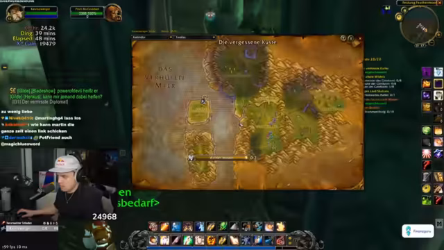 02:34:14Nach der erfolgreichen Jagd auf benötigte Gegenstände für eine Quest, stellt der Streamer fest, dass diese falsch abgegeben wurden. Die Gruppe muss sich neu orientieren und die Quest korrekt abschließen. Der Fokus verlagert sich nun auf das Sammeln von World Buffs. Ein Gildenmitglied wird beauftragt, ein Portal zu erstellen, um die Reise zu beschleunigen, da die Buffs für den bevorstehenden Dungeon 'Kloster' als wichtig erachtet werden.