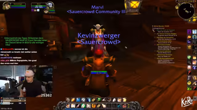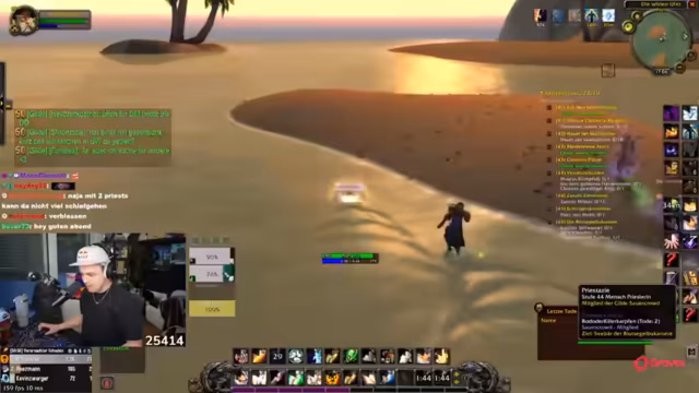10:20:12Der Stream konzentriert sich wieder auf das Gameplay in World of Warcraft, insbesondere das Grinden für Erfahrungspunkte (XP). Es gibt technische Probleme mit dem Mana-Pool und die Jagd nach fehlenden XP wird beschrieben. Gleichzeitig wird die Gilde erweitert, indem Henke eingeladen wird, und die谈话drehen sich um die Schwierigkeiten von Dungeons, den Schlafplan der Charaktere und das Gameplay eines neuen Mitspielers.