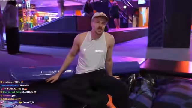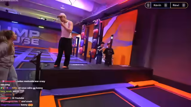 01:09:51Der Stream startet mit einem sportlichen Vergleich im Trampolinpark. Die Teilnehmer, papaplatte und Rewi, treten bei verschiedenen Herausforderungen wie Basketball und einem Air-Hockey-Spiel gegeneinander an. Der Wettbewerb, der als BO3 (Best of Three) ausgetragen wird, ist geprägt von sportlichen Aktionen, aber auch von ständigen technischen Problemen. Mehrmals fallen Kameras aus, und das Live-View-Signal verliert sich, was die Kommentierung und den Ablauf erheblich stört und zu Unterbrechungen führt. Die technische Zuverlässigkeit der Trampolinpark-Anlage selbst wird ebenfalls infrage gestellt, da bei einem Spiel aus Versehen ein Loch in die Luftmatratze gestoßen wird.