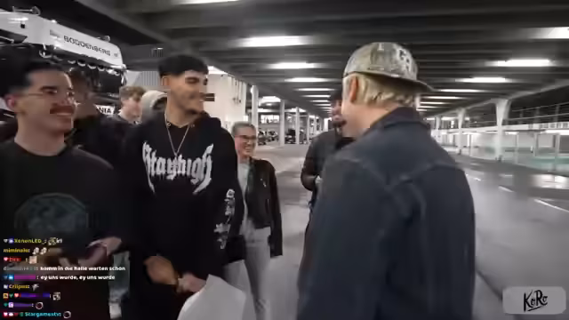 00:07:06Der Stream beginnt mit einem freundlichen Gruß und der Ankunft im Stau vor der Porsche-Arena in Stuttgart. Der Hauptgrund des Live-Events ist das Streamen eines UFO361-Konzerts. Nach monatelangen Vorabsprachen wurde die Möglichkeit genutzt, die Show live zu übertragen. Ein wichtiger Aspekt für das Publikum ist, dass der Eintritt kostenlos ist und die Zuschauer mitgefordert werden, das technische Gelingen zu wünschen.