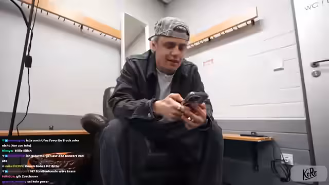00:40:44Ein zentraler Teil des Streams ist ein Interview mit UFO361 kurz vor seinem Auftritt. Er spricht über den hohen Druck der ersten Tour-Show, mögliche Fehler während des Soundchecks und seine Nervosität. Weiterhin gibt er Einblicke in seinen Arbeitsalltag, der aus einer Kombination aus Studioarbeit, Videodrehs und Tour besteht, und erklärt, wie ihn diese Vielfalt inspiriert.