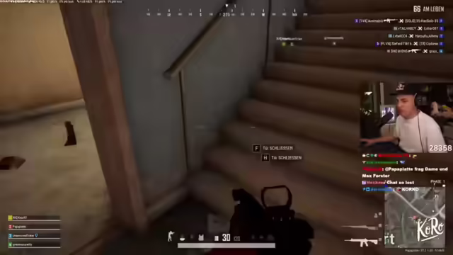 05:31:40Der Streamer plant eine riskante Rettungsaktion für Koko und holt sich dafür Verstärkung. Er bittet um Heilung und gibt seine Position durch. Die Gruppe ist in einen hitzigen Kampf verwickelt und versucht, die Gegner in Schach zu halten. Es wird über den Einsatz von BZ-Granaten diskutiert, um die Gegner aus ihrer Deckung zu zwingen. Der Streamer wirft eine Zone in Richtung der Gegner und versucht, diese herauszulocken. Er bemerkt, dass sich auch hinter ihnen Gegner befinden und die Gruppe in die Zone muss. Die Gruppe beschließt, gemeinsam vorzurücken und wird dabei beschossen. Es kommt zu weiteren Gefechten, bei denen der Streamer einen Gegner ausschaltet, aber auch selbst zu Boden geht. Er wird von Kevin wiederbelebt und es gelingt ihnen, alle Gegner auszuschalten. Der Streamer fragt, ob alle Gegner besiegt sind und freut sich über den gewonnenen Kampf. Die Gruppe beschließt, weiterzuziehen und ein neues Spiel zu starten.