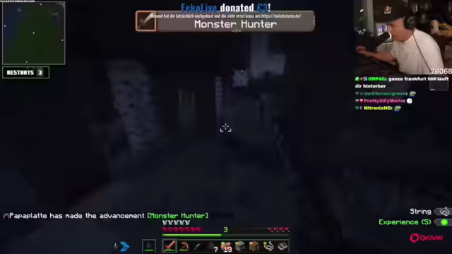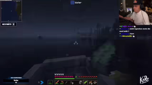 02:30:29Die Nacht wird als gruselig empfunden, und es wird ein ausgeleuchteter Ort mit Kisten entdeckt, der möglicherweise Essen enthält. Es wird festgestellt, dass die Nacht in diesem Modpack viel gruseliger ist als im normalen Minecraft. Ein Smithing-Template und rohes Fleisch werden gefunden. Nach dem Ausrauben einer Kiste wird die Umgebung erkundet, um ein Dorf zu finden. Ein Dungeon wird gesichtet, aber es besteht Unsicherheit, ob er betreten werden sollte. Die Nacht soll auf dem Wasser verbracht werden, da es an Land zu gefährlich erscheint. Ein Zombie gräbt sich durch die Decke, und ein Creeper kommt hinzu, was die Gefahren der Nacht verdeutlicht. Ein Dorf wird entdeckt, und es wird beschlossen, es zu erkunden. Es wird über das Rauchen diskutiert, und es wird erwähnt, dass der Ehrgeiz geweckt wurde. Es wird festgestellt, dass der Sub-Modus aktiviert ist, und es wird auf Twitch-Prime-Abonnements hingewiesen.