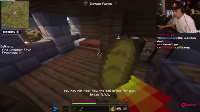 01:52:19Der Streamer überlegt, das gefundene Dorf als Basis zu nutzen. Er entdeckt zwei Eisengolems und plant, die nächste Quest anzugehen, eine Kupferspitzhacke herzustellen. Er erkundet die Keybinds und andere Einstellungen, die er aber als unnötig für erfahrene Modpack-Spieler abtut. Er findet einen Keks und nimmt ihn mit. Der Streamer fragt, ob er bereits etwas falsch gemacht hat und ob er Angst vor der Nacht haben sollte. Er beschließt, die Nacht zu überspringen, was aber länger dauert. Am nächsten Tag plant er, ein Flintknife, ein Schild und einen Rucksack herzustellen. Er sucht nach Gravel, um an Flint zu gelangen und findet die Vibes im Spiel bis jetzt sehr gut und entspannend. Er vergleicht das Gefühl mit dem ersten Mal, als er Minecraft gespielt hat. Er entdeckt ein Grab und tötet die Queen, um es zu plündern.