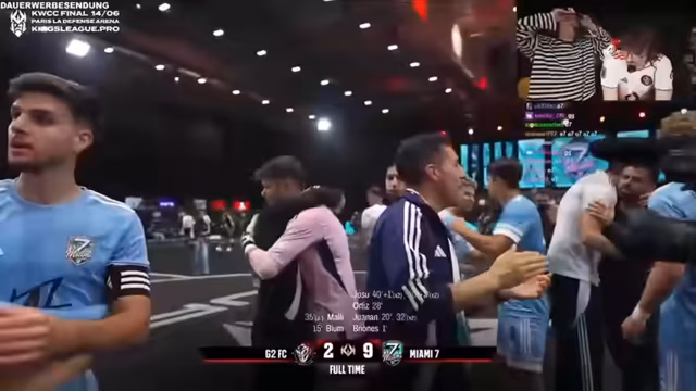 00:38:06Das Spiel von G2 gegen Miami 7 (das Team von Jake Paul und Adin Ross) ist für 20 Uhr angesetzt. Wieland kündigt an, falls es zu Elfmeter kommt, werde er diese mit dem linken Fuß schießen müssen, da sein rechtes Bein ihn stark schmerzt. Trotz seiner Krankheit und des gebrochenen Zehs ist Wieland zuversichtlich und tippt auf einen Sieg seines Teams mit 4-1. Die Spannung für das Spiel steigt, da alle anwesenden Spieler und Zuschauer die Vorbereitungen beobachten.