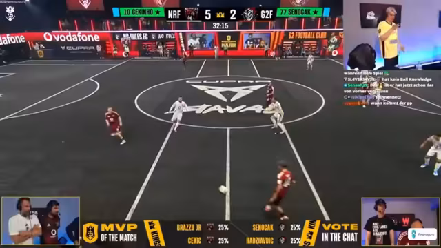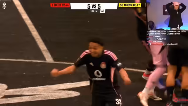 02:29:10Das Halbfinale zwischen den Tiki Taka Fußballfreunden und den Juniors FC beginnt. Es wird das letzte Spiel vor dem Finale sein, und es herrscht ein K.-o.-System. Jede Niederlage bedeutet das Ausscheiden, während der Sieg ins Finale führt. Die Teams sind hochmotiviert, wie die überwältigende Reaktion auf dem Stream zeigt.
