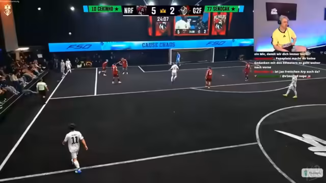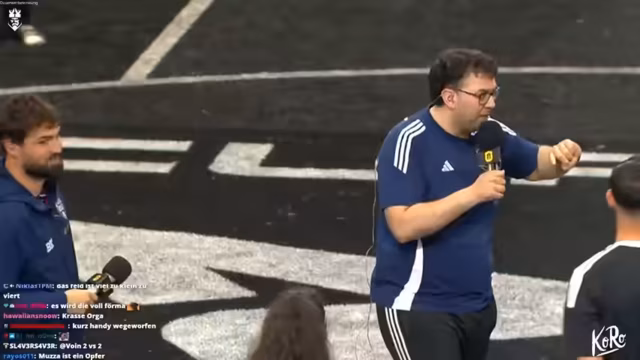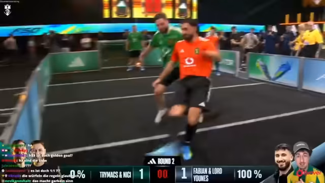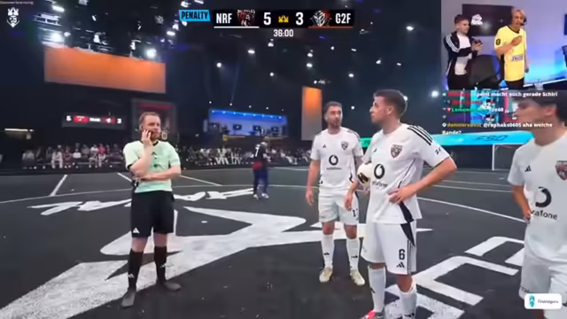 05:03:10Die ersten Spiele des Cage Showdowns beginnen, wobei Schiedsrichter wie Kevin und Zabix Entscheidungen treffen. Es gibt spannende Momente wie Tore, Fouls und Diskussionen über die Regeln. Die Streamer kommentieren das Spielgeschehen live und interagieren mit den Zuschauern. Es werden Teams wie Lisan und Klingern gegen Younes und Agamosa vorgestellt, und es gibt viel Action und Emotionen auf dem Spielfeld.