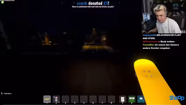 01:51:22Der Streamer beginnt den Stream mit dem Erhalt von 2600 Dollar von Benji und gibt ihm sofort ein neues Otz. Anschließend bringt er den Rest zu einer anderen Dealerin, wobei er erwähnt, dass er immer an den Cops vorbeifahren muss. Plötzlich wird er von der Polizei verfolgt, was zu einer stressigen Situation führt. Er beschreibt seine Panik und versuche, der Polizei zu entkommen, während er auch erwähnt, dass seine Grafik von Ultrafepic gemacht wird und Alex SpielTV bei ihm im Rewe arbeitet.