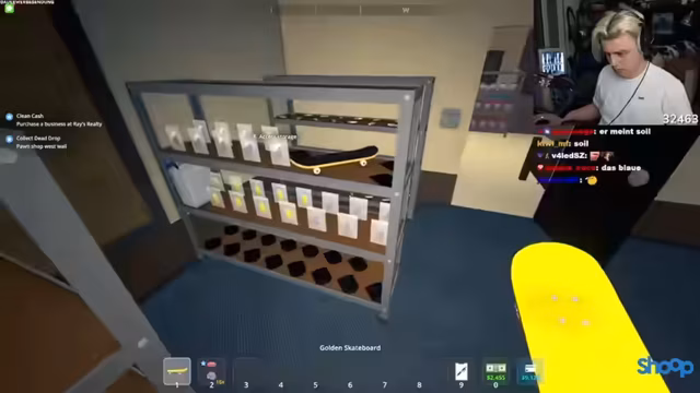 02:22:53Es wird das Ziel formuliert, 25.000 Dollar für die nächste Immobilie zu sammeln. Die restlichen Granddaddy Purple werden an die Dealer gegeben. Die Dealer laufen sehr gut und generieren viel Geld. Der Kauf von Gläsern über die App wird aufgrund der Liefergebühren verworfen. Es wird gehofft, dass durch besseres Weed und mehr Kunden ein neuer Kreis freigeschaltet werden kann. Der Streamer wünscht sich mehr Meth-Verkäufe. Der erste Tag, an dem 10.000 Dollar eingenommen wurden, wird gefeiert. Das Fake-Business hat sich an einem Tag wieder reingeholt. Das Ziel ist es, Enforcer 1 zu werden. Mitarbeiter werden überbezahlt, damit sie am nächsten Tag auch wieder Geld haben. Es wird eine zweite Fake-Immo benötigt, da zu viel Geld vorhanden ist. Es wird überlegt, in was investiert werden soll. Eine weitere Mixing Station nur für Meth soll gekauft werden. Es werden 100 Jars gekauft. Neues Weed wird verpackt und angeboten: 'Fetter Sack'. Es wird überlegt, ob 'Fetter Sack' geraucht werden soll. Der Streamer braucht 100 Mal Pferdesamen und bittet Redzmann, Geld einzuzahlen. Das 1er-Limit der Bank wird als störend empfunden. Es wird überlegt, ein weiteres Fake-Business zu kaufen. Der neue Weed-Mix 'Fetter Sack' wird ins Sortiment aufgenommen.