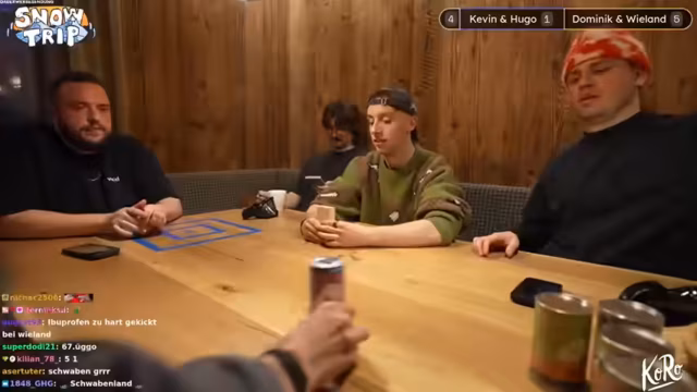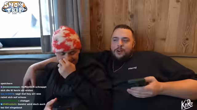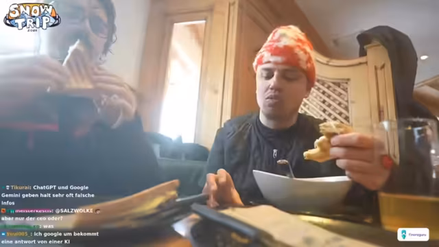 04:55:50Nach einer ereignisreichen Snow-Tour angekommen, wird der Tag gemütlich ausklingen. Die Gruppe räumt gemeinsam Schnee vom Dach, was zu einem interaktiven Spiel wird. Der Streamer wechselt auf sein Gaming-Setup, um einen lockeren Spieleabend zu veranstalten. Er ist erleichtert, dass alle wieder wohlbehalten sind und plant, den Abend entspannt mit den Zuschauern weiter zu verbringen.
