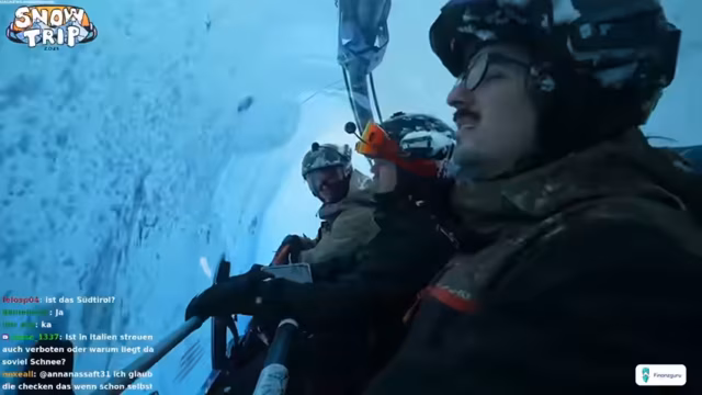 01:20:26Zu Beginn des Streams wird die Fahrtechnik der Teilnehmer analysiert, insbesondere bei Hugo und Kevin, die für ihre guten Fortschritte gelobt werden. Die allgemeinen Pistenbedingungen als sehr anspruchsvoll beschrieben, mit viel Tiefschnee, der das Vorankommen erschwert. Ein Teilnehmer steckte fest, was zu einem solidarischem Hilfsaufruf führte. Ein problematischer Bereich mit einem gelben, ausgelaufenen Inhalt in einem Rucksack sorgte für Chaos und Verärgerung, da der Inhalt durch die Packtasche lief und den Schnee verunreinigte.