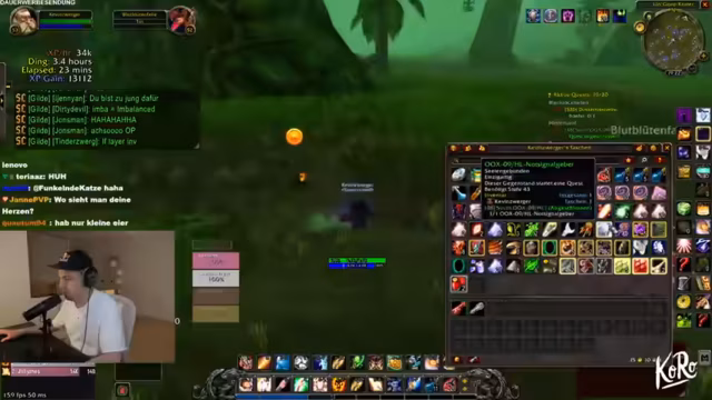 02:29:08Nach der erfolgreichen Behebung des technischen Problems setzt der Streamer das Spiel World of Warcraft fort. Die Charaktere der Gruppe sind weiterhin in der Quest-Höhle aktiv und sammeln Gegenstände. Gleichzeitig tauchen persönliche Themen im Chat auf, wie der Vergleich von Autos wie dem BMW X2 und X3, sowie die Miete eines Fahrzeugs in Barcelona, die auf Probleme bei der Anmietung und Kreditkartensperren stößt. Der Streamer nutzt die Zeit auch, um auf Chat-Kommentare zu reagieren und den Spielverlauf zu moderieren.