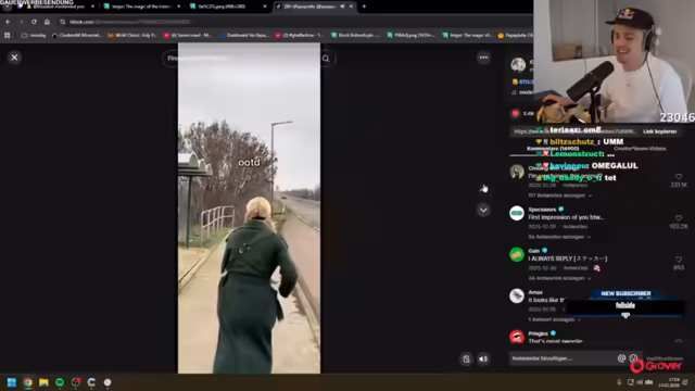 00:45:38Ein großer Teil des Streams besteht der Vorstellung einer Reihe viraler und oft skurriler TikToks. Der Streamer präsentiert Inhalte wie ein Rehkitz, das gesichert werden muss, einen Hund, der anscheinend von einem Elektroschocker verspottet wird, und Videos von älteren Menschen, die stürzen und wieder aufstehen. Ein weiterer gezeigter TikTok thematisiert kulturelle Normen und die Double Standards in Bezug auf Geschlechterrollen und selbstbewusste Auftritte. Die TikToks werden mit viel Reaktion aus dem Chat kommentiert.