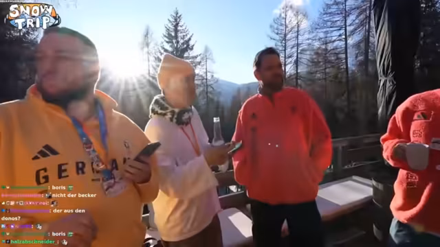 07:17:29Eine besondere kulturelle Erfahrung war die Begegnung mit der Musikgruppe Mooswiesner. Nachdem anfangs technische und unkoordinierte Versuche gemacht wurden, gemeinsam Musik zu machen, entwickelte sich ein spontaner und intensiver Austausch. Die Gruppe spielte live und bot eine authentische bayerische Live-Erfahrung. Die Streamer sammelten als Andenken an diese Interaktion Pins der Musiker. Dies war ein Höhepunkt, der die Gemütlichkeit und den einzigartigen Charakter des deutschen Hauses unterstrich.