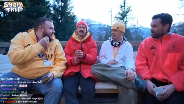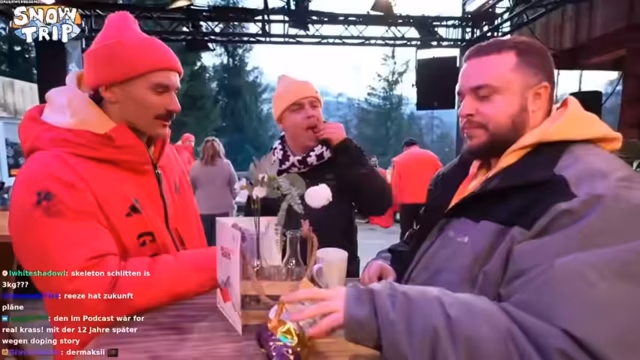 03:54:35Die Atmosphäre ist geprägt von der Aufregung über die beiden Goldmedaillen. Ein Gespräch mit den Athleten findet statt, wird aber als eine Art Desaster empfunden, da sich der Streamer schlecht vorbereitet fühlte und sich unsicher über die korrekte Bezeichnung für das Abbrechen einer Fahrt auf der Piste ärgert. Die Situation beschreibt er als surreal, da sich die Athleten nach Jahren Pause wieder als Sportler fühlen, während es für ihn längst vorbei ist.