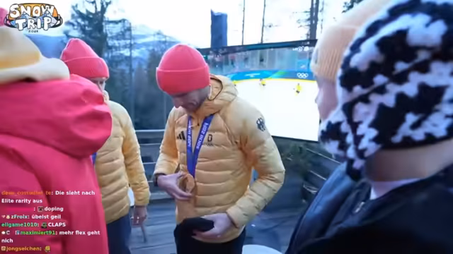 06:39:36Die technischen Probleme halten an; ein Streamer leidet unter Kopfschmerzen und benötigt eine Powerbank für sein Handy. Dominik ist auf der Suche nach Ponchos für einen Freund. Später findet im Deutschen Haus ein offizieller Empfang mit dem deutschen Botschafter statt. Die Streamer sind begeistert von der Atmosphäre und teilen stolz mit, dass Jacqueline Loercher, mit der sie zuvor gesprochen haben, Bronze im Skeleton gewonnen hat. Sie zelebrieren den Erfolg und genießen den geselligen Rahmen der Veranstaltung.