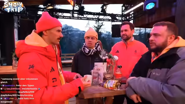 03:09:07Zu Beginn des Streams plant der Streamer seine Missionen für den Tag. Er muss einen Bierkrug von Team Deutschland aus dem Eingangsbereich mitnehmen und hat darüber hinaus die Aufgabe, Regenponchos und Kondome zu organisieren. Letztere hat er als humorvolle Geste verstanden, die an Sportler ausgetragen werden soll. Neben den persönlichen Vorbereitungen erwähnt er die Anwesenheit von Boris Becker und äußert seine Vorliebe für die Sportarten Curling und Bobfahren, was auf sein allgemeines Interesse an Wintersport hindeutet.