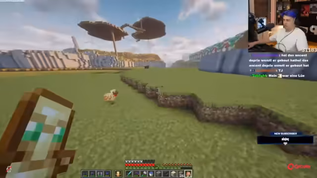 03:30:28Die Teilnehmer der Community teilen ihre konkreten Baupläne für das Projekt. Einer plant, einen hängenden Tempel vom westlichen Lufttempel aus 'Avatar' zu bauen. Der Streamer reagiert darauf mit Skepsis und Verwirrung, insbesondere als ihm von einem Zuschauer ein Bild des Tempels geschickt wird, das er für unrealistisch hält. Er zweifelt an der Machbarkeit des Vorhabens und an den Fähigkeiten des Bauherrn, was zu humorvollen Konversationen über das Design und die Umsetzung führt.