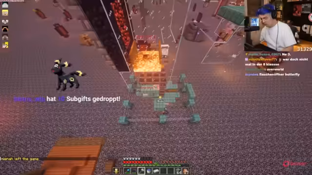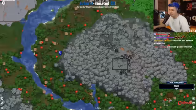02:25:06Ein spontanes Event wird angekündigt, das bei Alphastein stattfinden soll. Die genauen Details sind zunächst unklar, was zu Verwirrung im Chat führt. Nach Aufklärung handelt es sich um eine Gemeinschaftsveranstaltung, bei der jeder Teilnehmer die Möglichkeit hat, in der Base ein Haus zu bauen, um sich als Community zu verewigen. Als Anreiz wird das schönste Gebäude mit 100 Subs belohnt. Während des Starts des Events kommt es zu kleineren technischen und organisatorischen Problemen, wie_spawnende Hühner, die die Serverleistung beeinträchtigen.