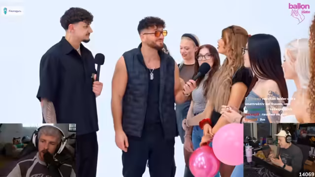 01:03:11Ein neuer Teilnehmer namens Revinzeit stellt sich vor, ein Gamer. Der Streamer zeigt ein Bild von Rewi, das er bei Google Bilder gefunden hat, und fragt die Zuschauer, ob sie es für eine Veränderung in Betracht ziehen würden. Anschließend startet das Format 'Pop the Ballon', bei dem Single-Kandidaten vorgestellt werden. Der erste Kandidat, Rachman (25, aus Bremen, macht eine Ausbildung im Kampf), stellt sich vor. Frauen im Chat beginnen sofort, über seinen Hintergrund und seine Aussagen zu spekulieren.