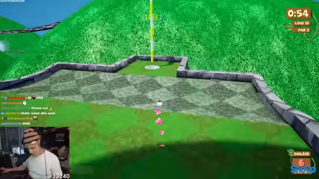 02:48:04Die Mini-Golf-Session beginnt mit einigen Fehltritten und Herausforderungen, die zu Neckereien zwischen den Spielern führen. Es gibt anfängliche Schwierigkeiten und Neustarts, wobei betont wird, dass bestimmte Szenen in die Zusammenfassung aufgenommen werden sollen. Die Spieler kommentieren ihre Leistungen, wobei einer den anderen als "Ratte" bezeichnet und sich über knappe Spielzüge freut. Es wird über die Anzahl der benötigten Versuche pro Loch diskutiert, wobei einer der Spieler immer noch in Führung liegt und sich über den anderen lustig macht. Es folgen weitere missglückte Versuche und gegenseitige Beschimpfungen, während sie sich durch die verschiedenen Löcher kämpfen. Einer der Spieler gibt an, dass er fast einen besonders riskanten Zug gewagt hätte, es aber dann doch nicht getan hat. Die beiden Spieler liefern sich einen verbalen Schlagabtausch mit gegenseitigen Beleidigungen und Anfeuerungen, während sie versuchen, die Minigolf-Herausforderungen zu meistern.