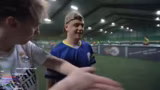 03:27:55Die Gruppe kommt an einem Fußballplatz an. Es wird über die Möglichkeit gesprochen, Fußball zu spielen. Die Teilnehmer üben Elfmeter schießen und geben sich gegenseitig Tipps zur Technik. Die Diskussion konzentriert sich auf die richtige Körperhaltung, den Anlauf und die Zielausrichtung. Die Übung ist anfangs frustrierend, aber mit fortschreitendem Training wird eine Verbesserung sichtbar. Die Stimmung bleibt trotz der Anstrengung positiv.