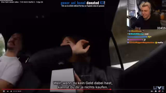 00:26:08Es wird die sechste Folge von 'The Race' Staffel 2 angekündigt, betitelt 'Eine Fahrt ändert alles'. Die Community wird aufgerufen, einen Daumen nach oben dazulassen, falls ihnen die Folge gefällt. Es wird über die bevorstehende OP gesprochen, die während des dreimonatigen Barcelona-Aufenthalts stattfinden muss, und die damit verbundenen logistischen Herausforderungen. Es wird die Route von Teilnehmern von 'The Race' analysiert, insbesondere die Entscheidung einer Teilnehmerin, von Süditalien nach Griechenland zu segeln. Die Schwierigkeiten und Herausforderungen der Teilnehmer werden thematisiert, von Schlafplätzen im Gras bis hin zu verpassten Mahlzeiten. Es wird über die Notwendigkeit von Hygieneartikeln wie Zahnbürsten diskutiert und die Frage aufgeworfen, ob man eine Woche oder zwei mit Kaugummis überleben könnte.