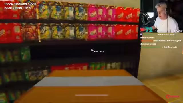 03:11:49Nach den intensiven Kämpfen in Battlefield wechselt der Streamer das Spiel und startet ein Horrorgame namens "Fuel for Flash". Die ersten Minuten dieses Spiels zeigen einen simulierten Arbeitsalltag in einer Tankstelle, der zunächst unbedrohlich und humorvoll wirkt. Er interagiert mit NPCs und erledigt alltägliche Aufgaben wie das Auffüllen der Regale und den Kundenservice. Der Stream beschreibt das Spiel als "chillig" und völlig ungleich dem erwarteten Horror-Erlebnis.