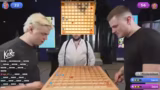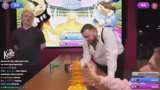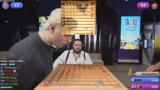 03:38:34In der zweiten Runde des Schranktrocken-Spiels werden Leiter-Golfbälle verwendet, wobei als Ziel gilt, fünf Bälle zu treffen. Kevin beginnt mit einer soliden Taktik und geht mit 2 zu 0 in Führung. Dave kann jedoch aufholen und das Spiel bis 4 zu 4 ausgleichen. In der Verlängerung gelingt es Dave, den entscheidenden Punkt zu erzielen und damit die Runde zu gewinnen. Nach diesem intensiven Spiel kündigt Streamer das achte Spiel an, 'Hoch hinaus'. Vorher gibt es einen kurzen Moment der Entspannung, bei dem die Kamera auf einen aufgestellten 'Chef'-Charakter gerichtet ist, der im Stream als Running Gag gilt, bevor die Action in die nächste Runde übergeht.