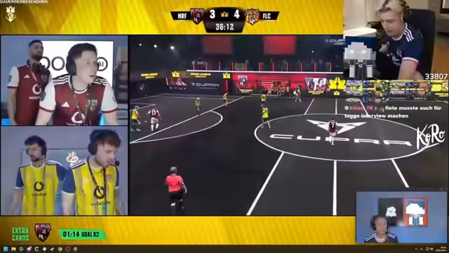 05:28:41Die Streamer zeigen beeindruckende Einzelleistungen wie einen Lupfer oder einen Volley-Schuss. Während des Spiels werden auch technische Aspekte angesprochen, wie die Lautstärke im Spiel und das Mikrofon. Zwischen den Matches gibt es Anekdoten über den Streamer-Basti, der einen VTuber-Avatar nutzt. Die Streamer feiern ihre Siege mit charakteristischen Posen und geben dem Spiel große Anerkennung, besonders für seine Rocket-League-ähnlichen Elemente und die spielerischen Freiheiten.