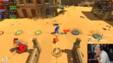 03:55:41Das Spielverlauf ist geprägt von zufälligen Minispielen und strategischen Entscheidungen. Die Teams nutzen verschiedene Items, wie Raketen oder Abrissbirnen, um den Gegner zu schwächen oder Schlüssel für die Kiste zu sammeln. Es kommt häufig zu Fehlern und Missverständnissen in der Kommunikation, was zu Verwirrung und suboptimalen Ergebnissen führt. Trotzdem gelingt es Team Rot, den ersten Pokal zu sichern, was den Spielstand auf 1:0 anhebt. Die Dynamik im Spiel wechselt ständig zwischen konkurrierenden und kooperierenden Phasen.