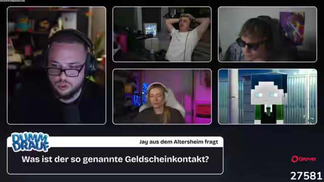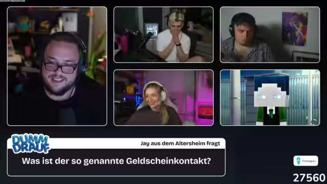 01:29:17Die Kandidaten werden vorgestellt mit jeweils drei knackigen Fakten über sich. Es beginnt mit Kevin, der sich als dumm, verpeilt und geizig beschreibt. Danach folgt GroKo, der angibt, glücksschuldig, zweimal geschieden zu sein und keinen Kontakt zu seinen Kindern zu haben. Merle bezeichnet sich als unemployed, sehr groß und schlecht in Videospielen. Abschließend präsentiert sich Basti mit der Fähigkeit, zwischen drei Wörtern und drei Fakten zu unterscheiden, einem ausgeträgten Schnurrbart und unfassbar beweglichen Hüften. Anschließend wird das erste Rätsel präsentiert, eingereicht von Jay aus dem Altersheim: Was ist der sogenannte Geldscheinkontakt? Es wird über mögliche Lösungen spekuliert, von Cashflow über Automaten, die Geldscheine annehmen, bis hin zu Personen, die Rentnern beim Einkaufen helfen. Die Vorschläge werden jedoch verworfen und es wird betont, dass die Lösung eher im Bereich der Technik zu finden ist.