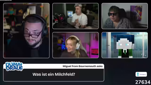 02:16:20Die Gruppe diskutiert die Bedeutung des Begriffs "Milchfeld". Zunächst werden verschiedene Vermutungen angestellt, darunter die Idee, dass es sich um weiße Küchenfliesen, ein überflutetes Reisfeld oder ein spezielles Feld für Kühe mit besonderer Milchqualität handelt. Es wird auch die Theorie aufgestellt, dass es sich um den Ort in der Grundschule handelt, an dem die Milch abgestellt wurde. Die Diskussionsteilnehmer überlegen, ob es etwas mit Pollen oder einem Ereignis in der Milchstraße zu tun hat. Schließlich konzentriert sich die Gruppe auf die Farbe Weiß und die Verbindung zu Milch oder Laktose. Nach vielen falschen Fährten wird die Lösung gefunden: Ein Milchfeld ist ein Feld auf einem Kaffeebecher, auf dem man ankreuzen kann, welche Milch enthalten ist. Es wird auch die Idee eingebracht, dass es sich um den Ort handelt, an dem ein Kuhjunges Milch von seiner Mutter bezieht.